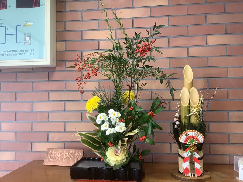 今週の生け花は、ハボタン、センリョウ、コギク、キク、ウラジロ、マツ、タケ、ナンテンです。 今年も残り2日となりました。ボランティアさんが、正月用の生け花として、正面玄関を飾ってもらいました。マツ、タケなど縁起物が揃っています。
