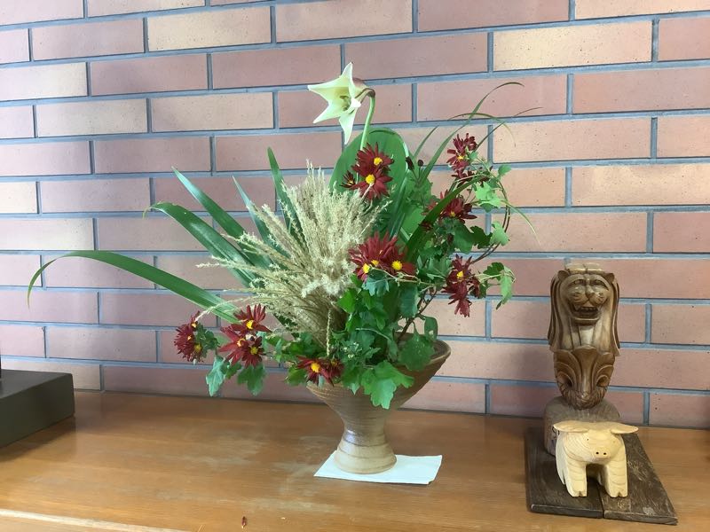 今週の生け花は、テッポウユリ、キク、シャガ、ススキです。 昨日から、2学期の個別懇談会が行われています。3年生にとっては、進路を決定していく大切な懇談会となります。 なお、懇談会は明日(11日)まで続きます。