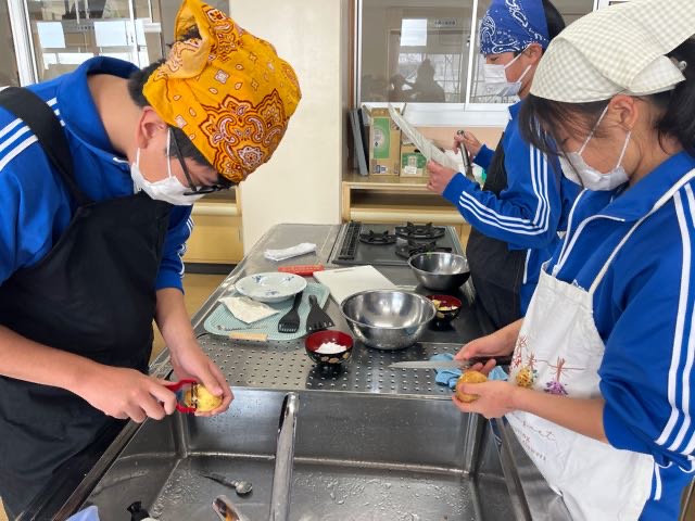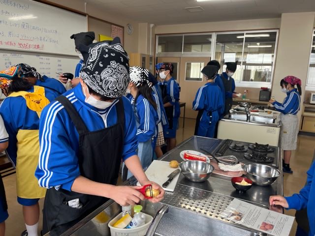 今日の2年2組の実習の様子です。準備も早く終え、人数が少ない班もありましたが、みんなで協力して時間内に終えることができました!