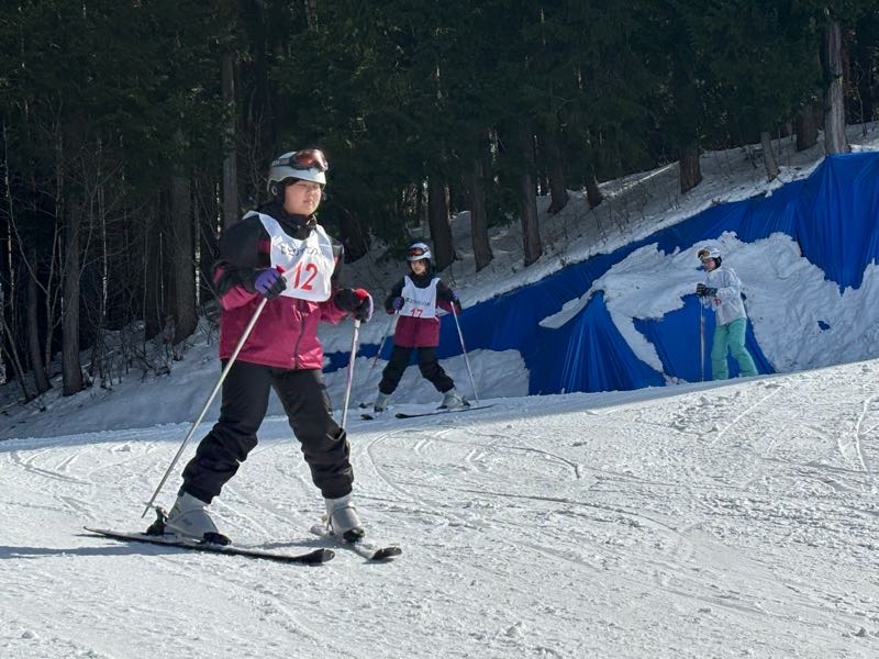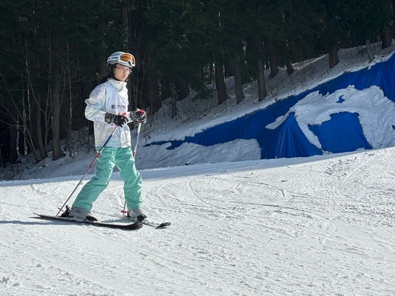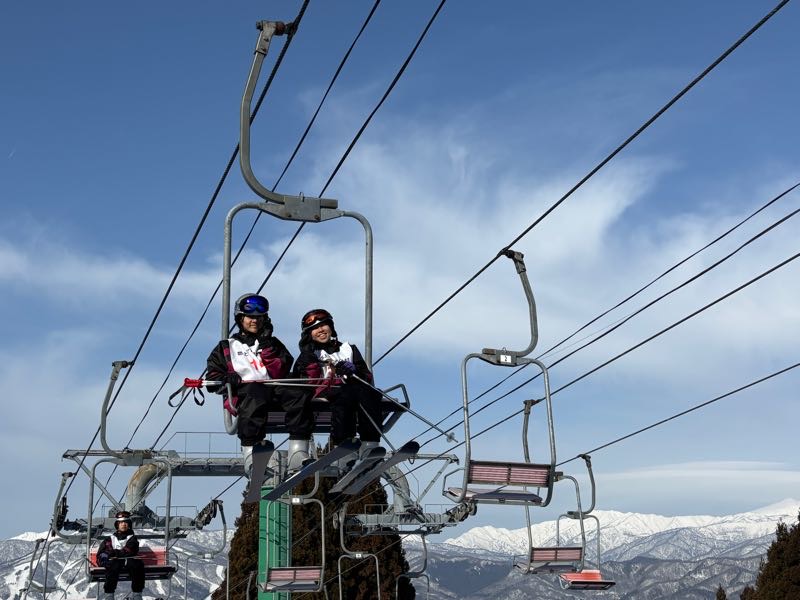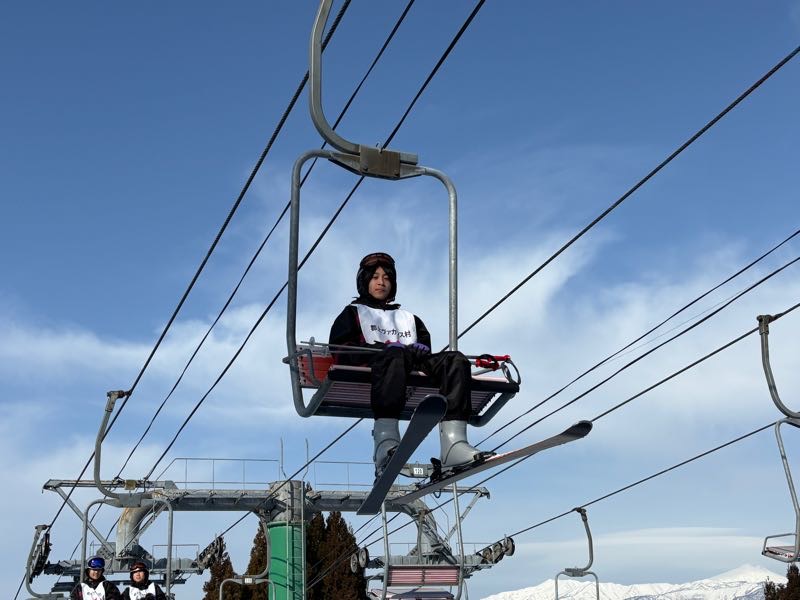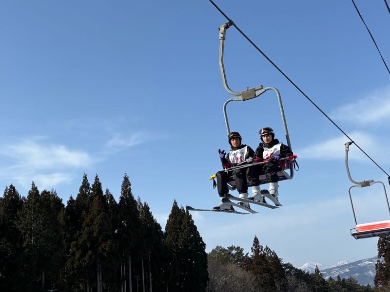 多くの班がリフトに乗って、ゲレンデ滑走デビューしました!初めてながらキメ顔もできます。