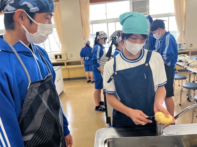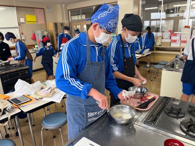 2年1組の実習の様子です。てきぱき動いて、元気いっぱいな1組です。担任の先生や教科担任の先生にもおやつをプレゼントしてくれました!