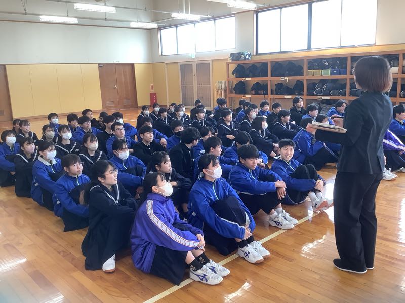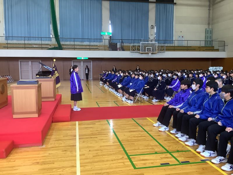 昨日、公立高校全日制の一般選抜の筆記試験が終わり、今日から本格的な卒業式練習がスタートしました。 1・2時間目は、歌練習を行いました。練習を始める前に、気持ちを高めるために、生徒や教員がスピーチをします。