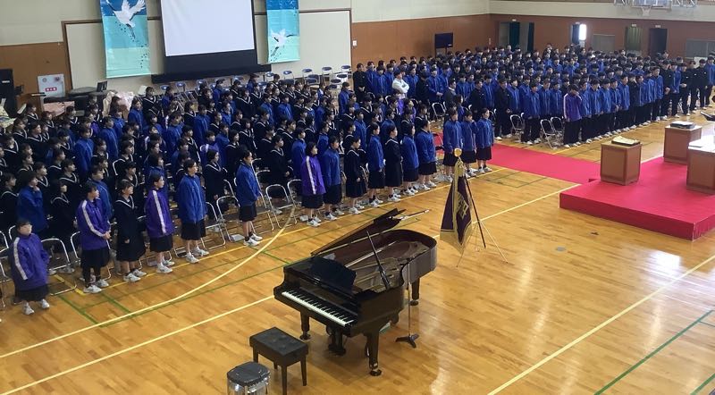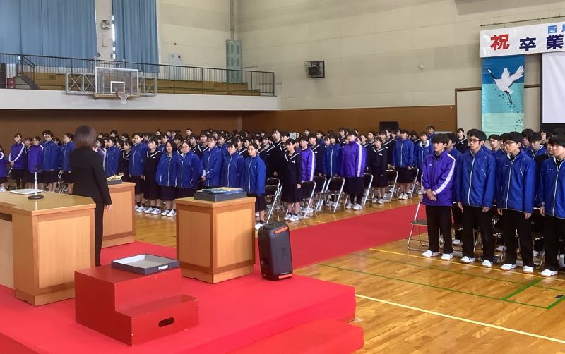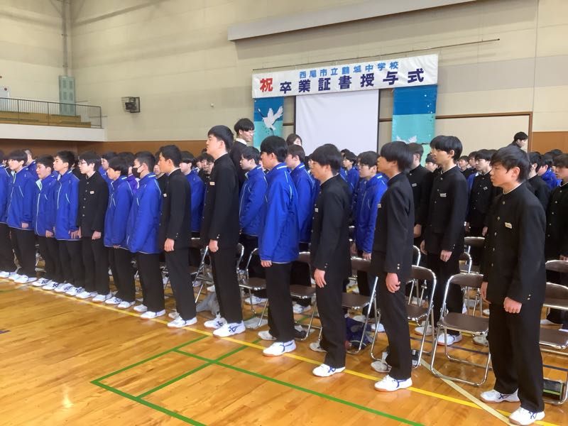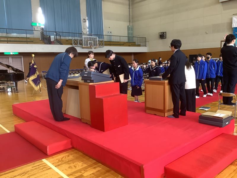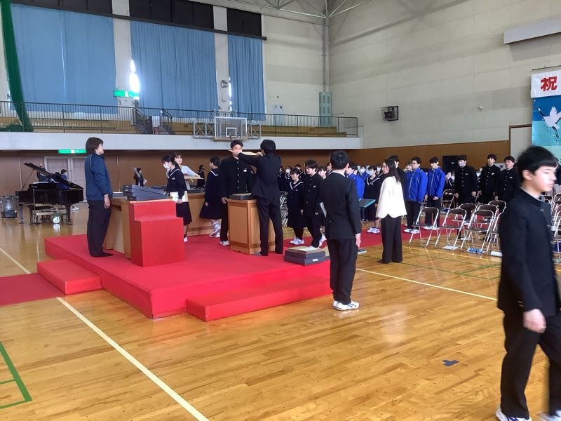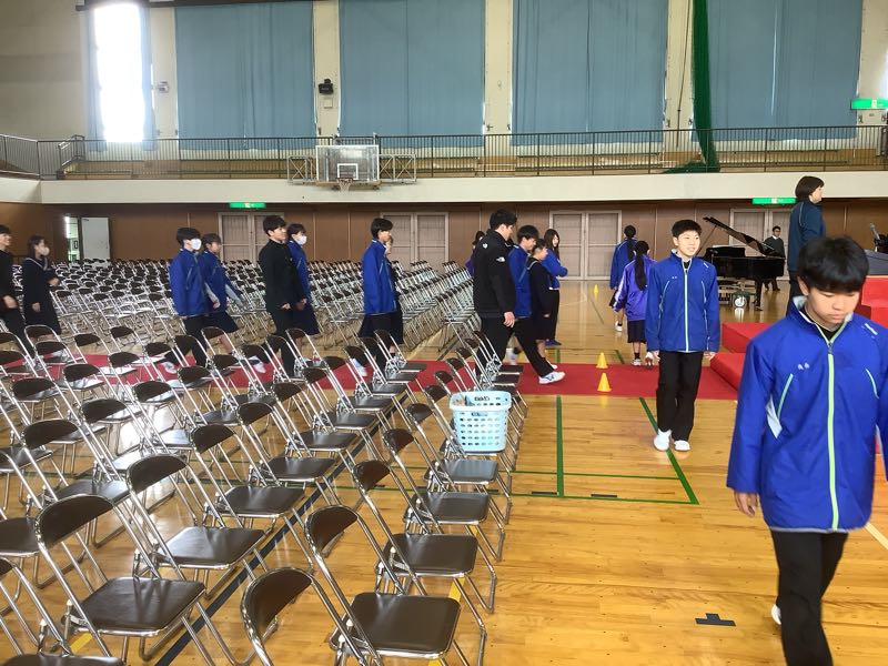 3・4時間目は、式練習です。9クラスを3グループに分けて、証書授与、入退場、呼名練習を30分ずつ練習をしました。