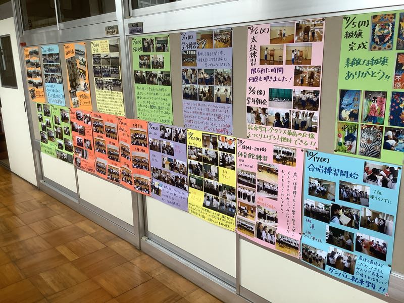 3年生の廊下には、1年生からの足跡を示す掲示が飾られていました。