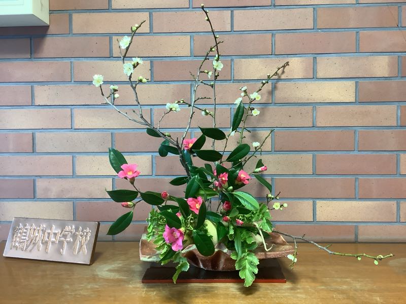 今週の生け花は、ツバキ、ウメ、ダイコンです。 お花のボランティアの先生の話によると、梅の花はもう満開だそうです。寒い寒いと思っていましたが、自然界は着実に春に向かっています。 卒業までの3年生の登校日数は、15日です。