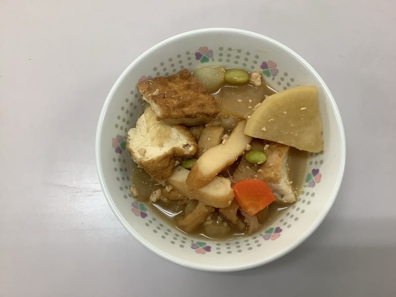 そぼろとは、牛・豚・鶏のひき肉や卵などの食材を、汁けがなくなるまで炒めてパラパラにほぐしたものをいいます。 給食でそぼろ煮の調理を行うと、野菜や肉などの食材から水分が出てつゆだくになってしまいますが、つゆも食材のうま味が溶け出しているのでおいしいです。