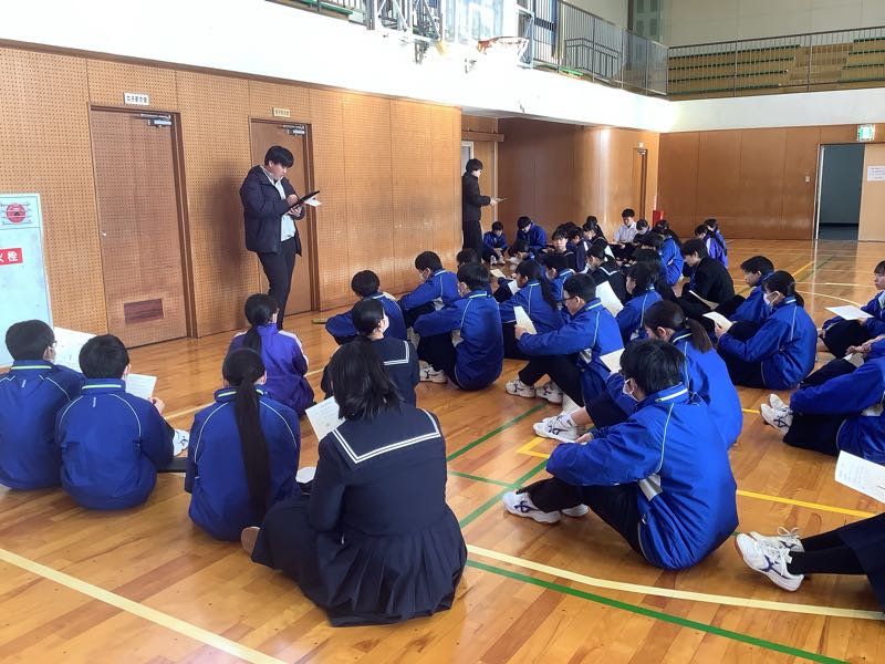 学年朝会の時間を使い、来週に迫った公立高校全日制一般選抜の事前指導が行われました。 各高校別に分かれ、担当の先生から当日の動きについて確認をしていました。 2校受検の生徒も、受検は1回で、第1志望の高校で試験を受けることになります。