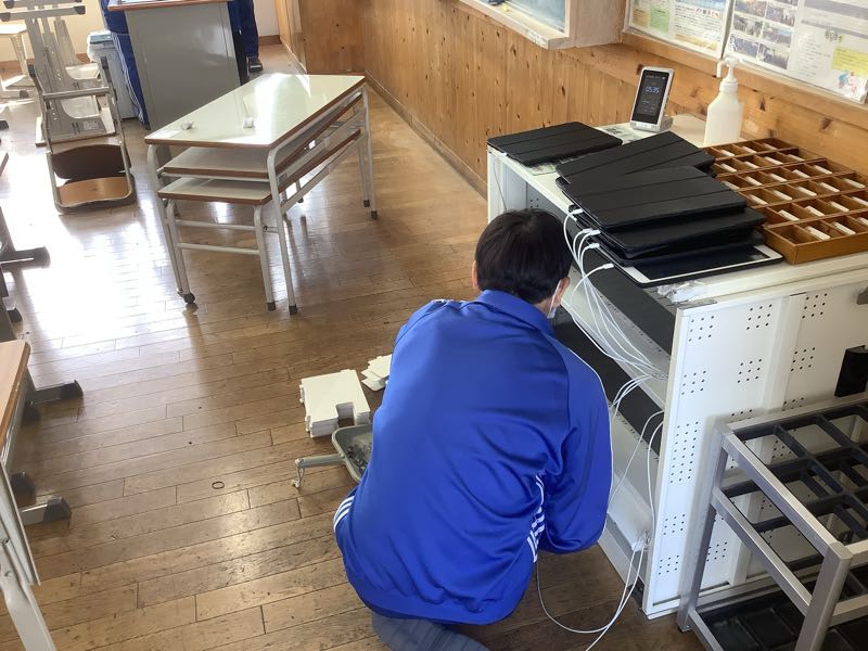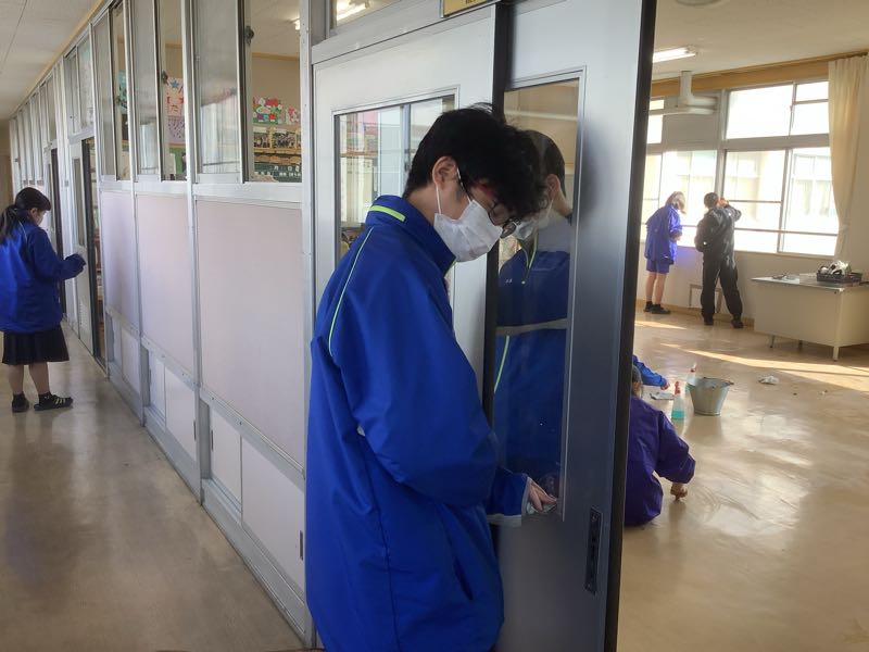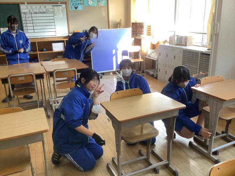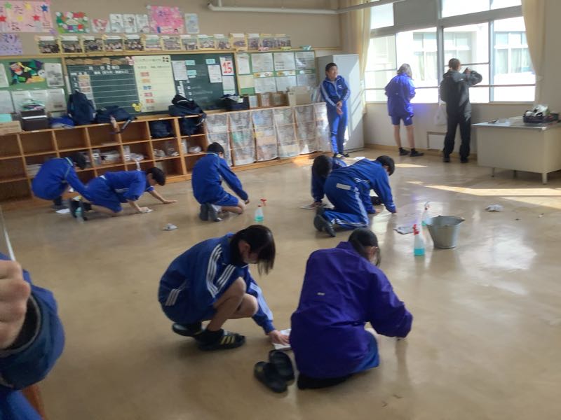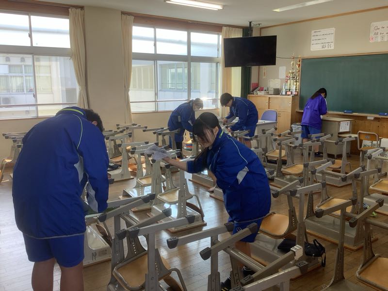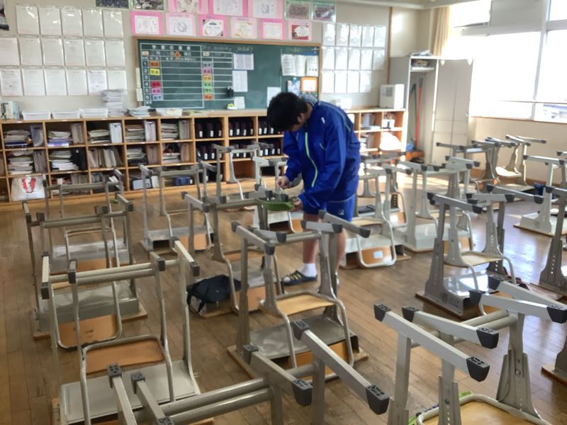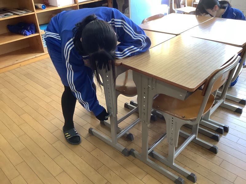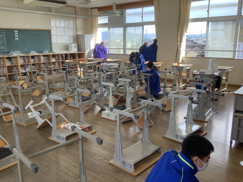 教室の環境整備も行いました。基本的に3年1組の生徒は、1年と2年の1組を担当しました。
