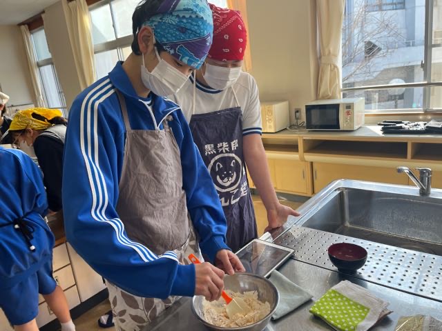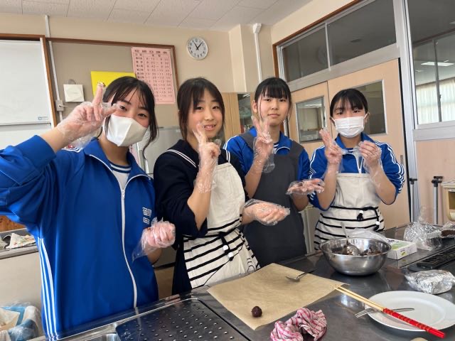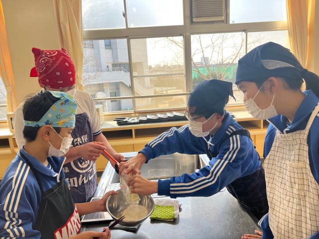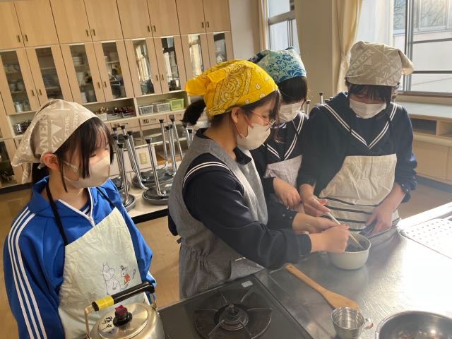 家庭部の調理実習の様子です。1.2年生は期末テストも終わり、ほっとひと息元気に楽しく実習しました。ガトーショコラ、メロンパン型クッキー、トリュフを作りました!