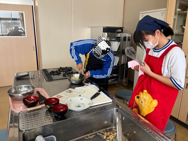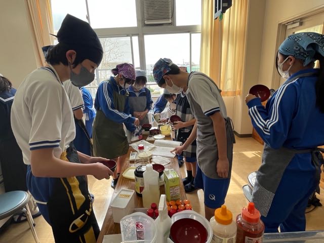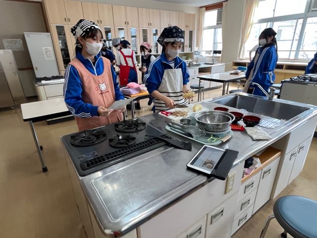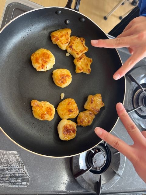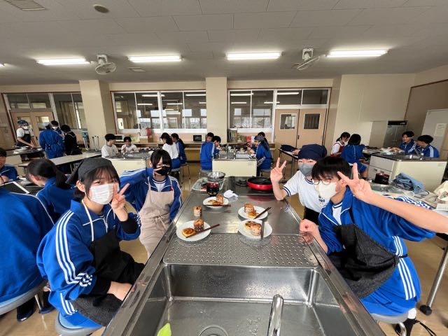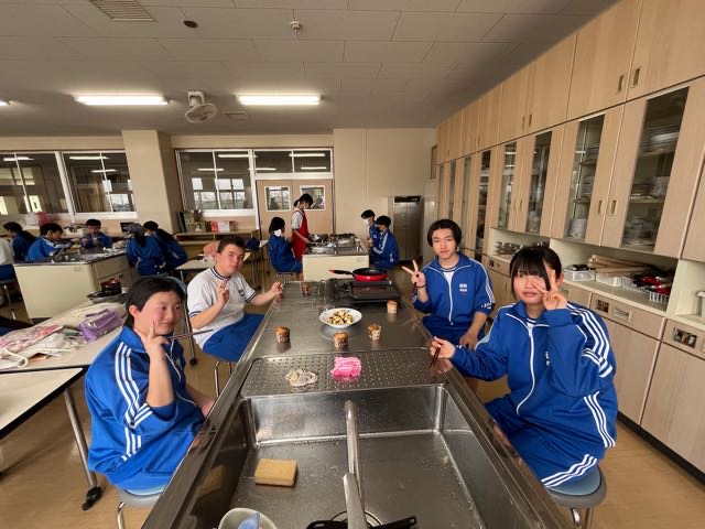 昨日の4組の実習の様子です。火加減に気をつけて、焼くことが出来ました!焦がさずに上手に焼けました?