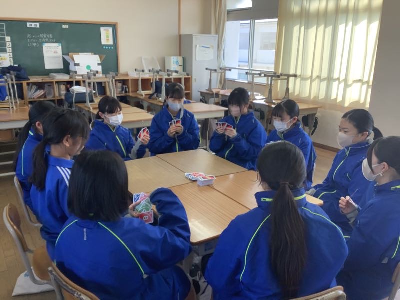 今日は、UNO•大富豪•バドミントン•ドッジボールの4種目に分かれて、真剣勝負を行う「ガチ4本勝負」という企画がありました。自分が選んだ種目において、どの生徒も活躍していました。学年を超えて、交流をしたり、競技を楽しんだりする姿が見られました。