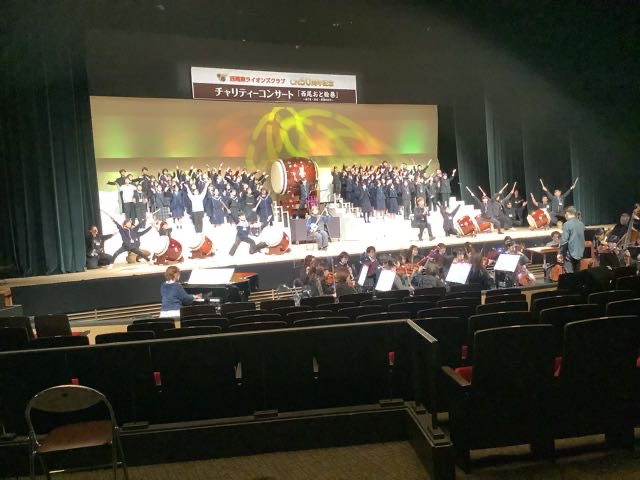 3月14日ににししん文化会館茶々っとホールで行われた、西尾東ライオンズクラブ50周年記念チャリティーコンサート「西尾おと絵巻」に参加をしました。プロのオーケストラ、和太鼓と共に演奏をしました。プロの演奏家からたくさんの刺激を受けて、堂々と合唱することができました。