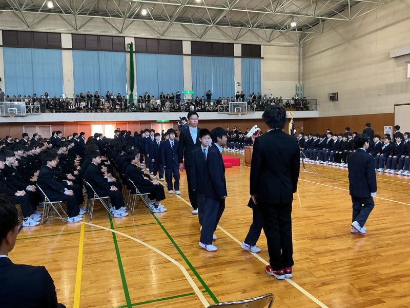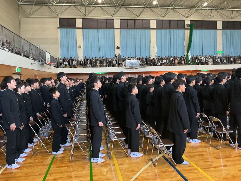 最後に在校生が、鶴城中学校の校歌を新入生に向けて歌いました。