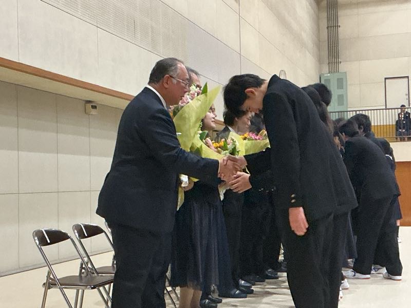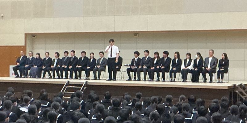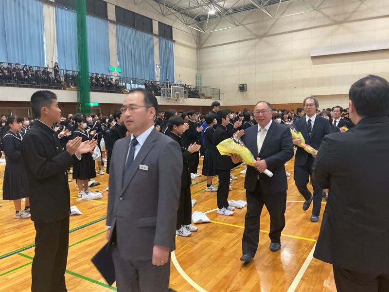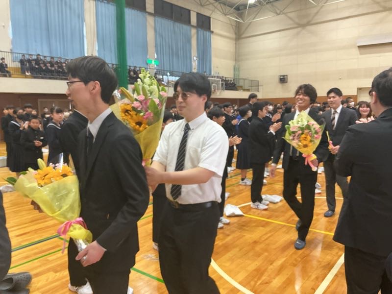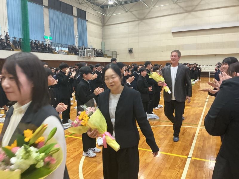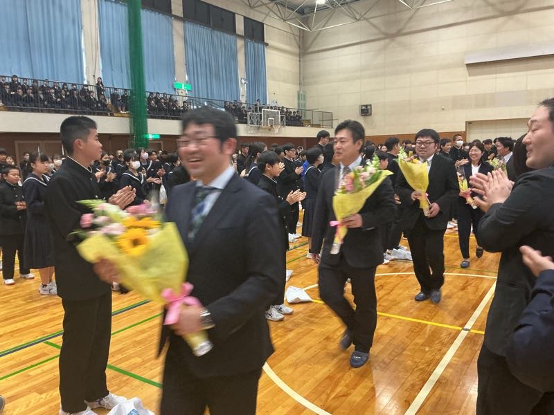 生徒の列を抜け、アリーナから退場します。 私たちのためにありがとうございました。先生方の言葉を胸に頑張っていこうと思います。