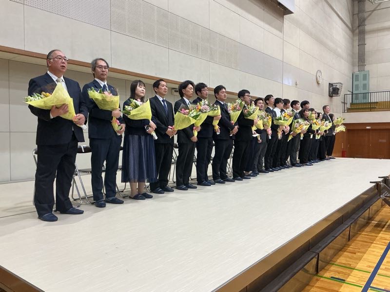 今年度の異動で、鶴城中学校を転退職された先生方とのお別れの会が行われました。 今年度の異動は大きく、20名を超える先生方が来校され、最後のあいさつをされました。
