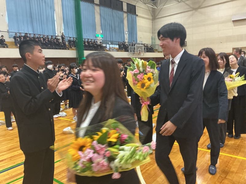 代表生徒の花束贈呈です。