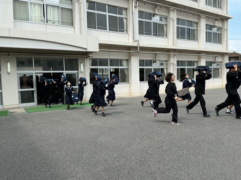 鶴城中学校は、1000人近くの生徒数で、運動場に避難した時の人の多さに驚きます。 今回も、短い時間で、全員が避難することができました。普段からこういった訓練が大切になります。 災害は、忘れた頃にやってきます。