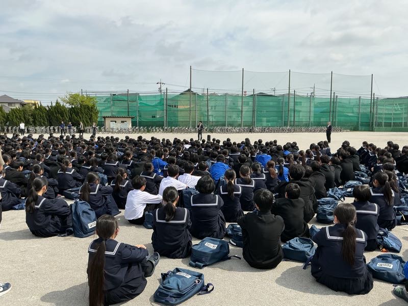 年度初めの避難訓練がありました。今回は、地震を想定した訓練ですが、各教室からの避難経路を確認する目的もあります。 1年生にとっては、大きな中学校での訓練でとても緊張しました。