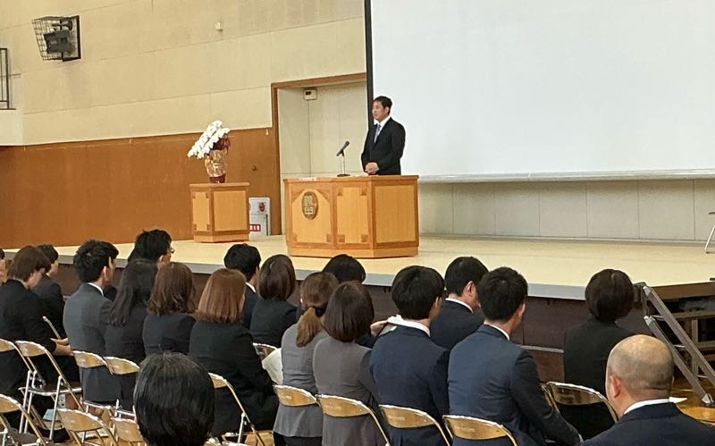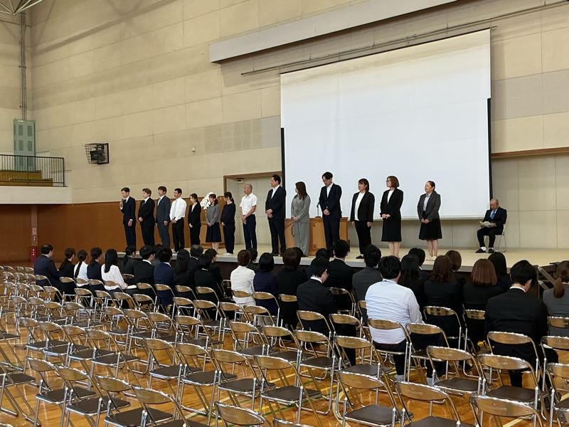 総会の後、新しく鶴城中学校へ赴任された先生の紹介がありました。 1年間、よろしくお願いします。
