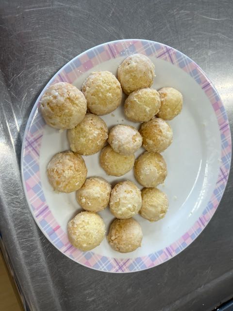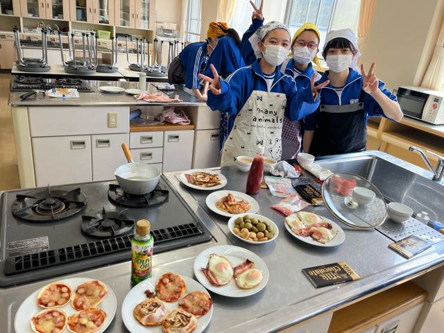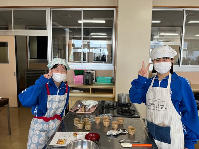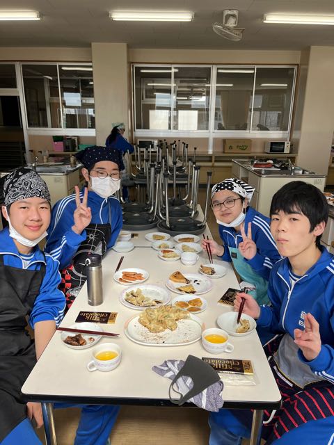 今日の「花コーンしゅうまい」は、給食室での手作りです。しゅうまいの皮を細切りにしてつけると、花びらのように見えるので、「花しゅうまい」と呼びます。