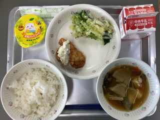 今日のメニューは、チキン南蛮、青菜和え、けんちん汁、豆乳パンナコッタです。チキン南蛮は、たくあんを使ったマヨドレがかかっており、いつも以上に美味しい逸品です。お代わりが欲しくなります。