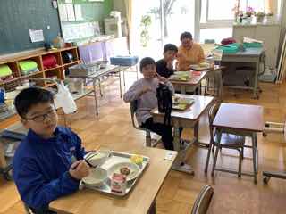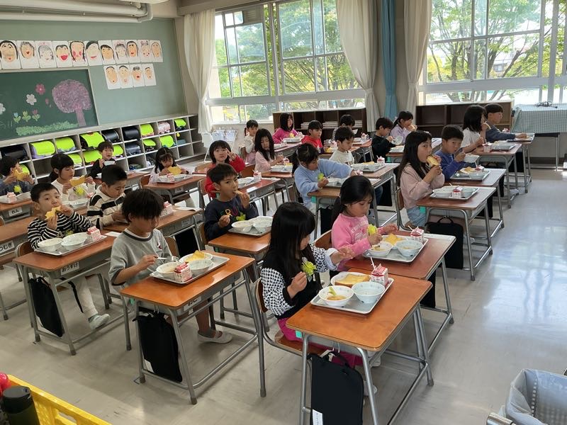 新しいクラスで、みんなで協力をして準備しました。久しぶりの給食は、とてもおいしかったです。