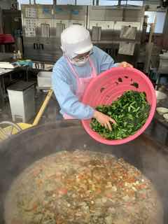 けんちん汁を大鍋で煮ています。