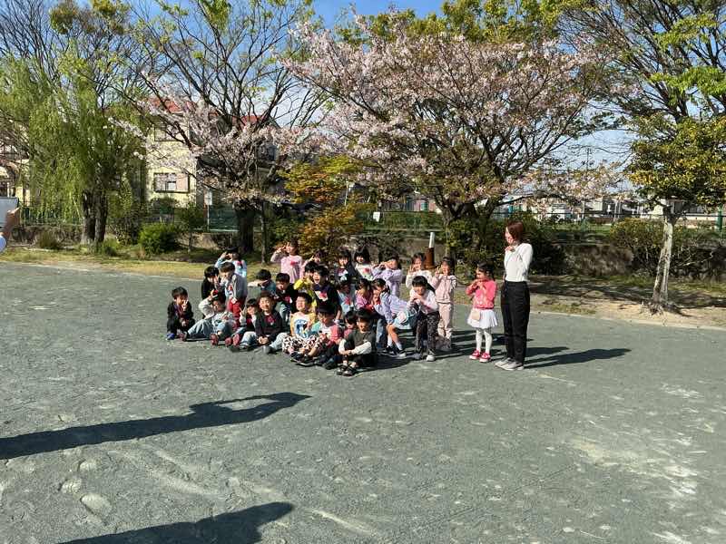 新学期2日目。1年生は、桜の木の下で掲示用の学級写真を撮りました。