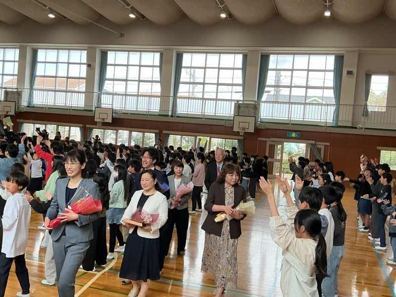 校歌と「ぼく鶴」で、先生方をお見送りしました。