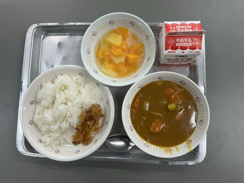 新学期初めての給食は、みんなの大好きなカレーでした。