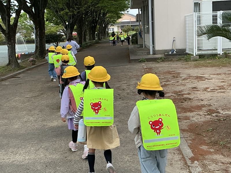 1年生は、初めての1年生下校でした。先生のお話を聞いて、「さようなら」をしました。1年生も明日から給食が始まります。おいしい給食を食べて、丈夫な体をつくりましょう。