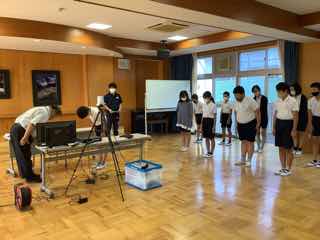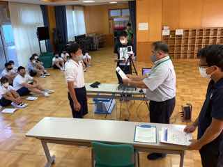 今日は全校朝会。今日からZOOMではなく、校内放送ができるようになりました。教室では、チャンネルをあわせるだけですみます。放送する多目的室では、こんな感じで行っていました。