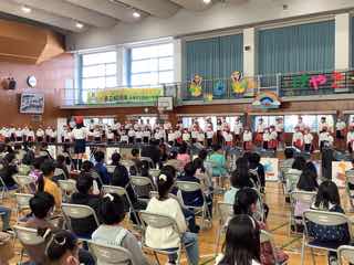 「風になりたい」「楽しいマーチ」「すてきな友達」を披露しました。軽快な音楽に思わず体が動きました。学級目標と学年目標の意味も知ることができました。