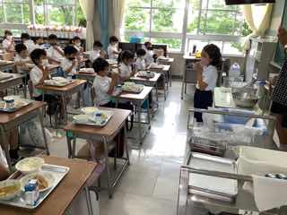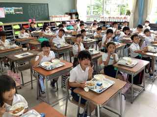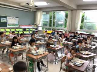 今日は、1の3におじゃましました。一年生の子たちには、名前を覚えて欲しかったので、自己紹介を兼ねて挨拶しました。「どうしたの?」「何しに来たの?」と小声で聞かれました。一年生は、給食の時間もどの教室も静かです。すごいね!