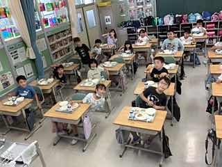 調理員さんたちのおかげで、いつも美味しい給食を食べることができます。