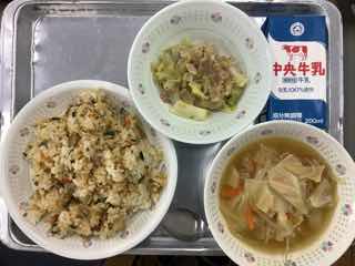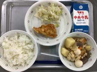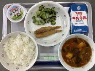 今日のメニューは、メヒカリのフライ、きゅうりの昆布和え、生揚げと青菜の味噌汁、西尾産抹茶デザートです。メヒカリは、三河湾でとれる深海魚。小ぶりで丸ごと食べられます。きゅうりは西三河でとれる「三河きゅうり」というブランドです。