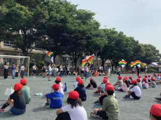 全校でリズムにのって踊るのは、とても気持ちがいいですね〜!一年生の子がこの日に踊れるように、六年生が事前に教えに来てくれましたね。おかげで、一年生も張り切って踊っていました。鶴小らしい優しさを感じる時間でした。