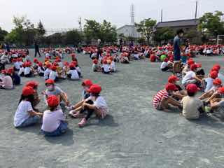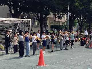 今日は、前期児童朝会がありました。全校児童は、登校後、早速運動場に集合です。この日のために、児童会役員の子が中心になって準備してきました。また、ブラスバンド部、バトン部、コーラス部の発表もあり、盛りだくさんの内容です。