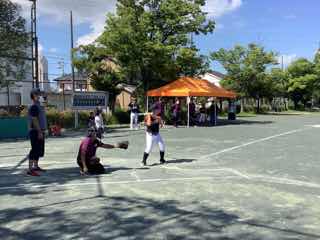 はじめは、緊張気味のソフト部メンバーでしたが、徐々に体が動き始めます。また、関係する保護者の方が審判と応援をしてくださり、力が湧いてきます。
