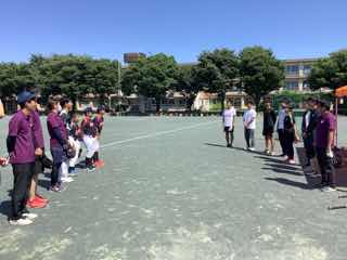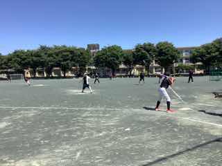 バレーボール、サッカー、バスケットボール、剣道と市の大会が始まっています。鶴小のソフトボール部は、人数が3人のため市の大会に出場できません。そこで、6年生の3人と部活動担当、高学年の先生でチームを組み、教員チームと引退試合に臨みました。