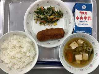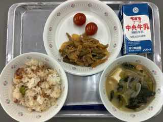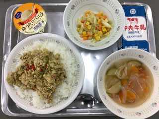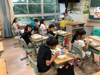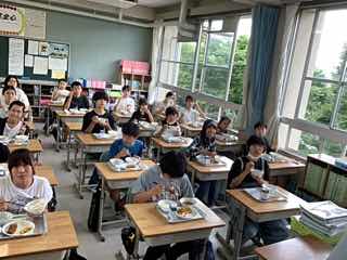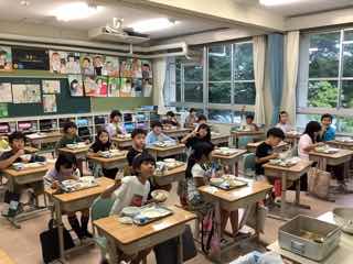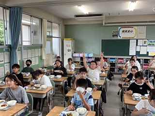 今日は、4の3におじゃましました。ガパオライスの具をご飯にのせて食べている子が少なかったので、「のせて食べてみて」と伝えました。少し辛味もあることに気づいている子もいましたよ。