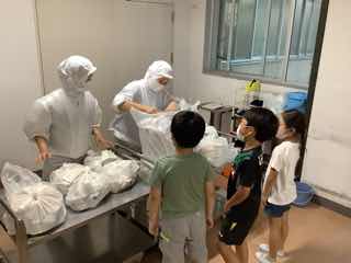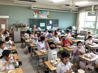時間を見計らって、配膳室にアイスを取りに行きました。バニラアイス、メロンシャーベット、ブドウ味のガリガリくんの3種類です。アイスも美味しくいただきました。調理員さん、暑い作業場で美味しい給食を作ってくださり、本当にありがとうございました。