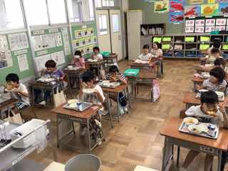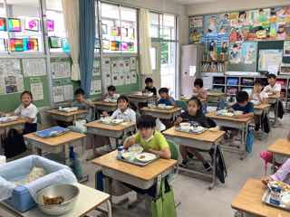 配膳もおかわりも、学級目標の「なかま」の通り、チームワークよく動いていました。