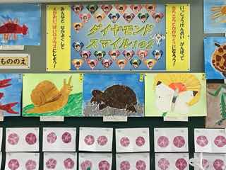 絵をかく会で、本校の児童がかいた作品は、玄関付近の廊下や各階の教室付近に飾られています。