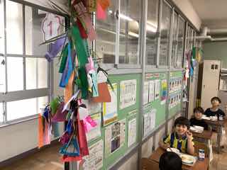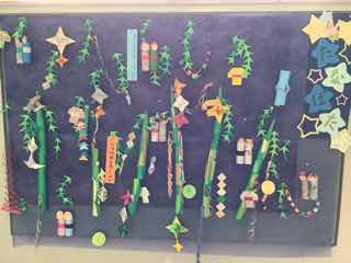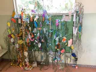 廊下には、笹飾りがたくさん飾られていました。雰囲気が出て、季節感を味わえます。
