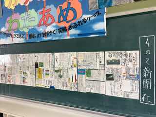 教室には、グループで考えて作成した新聞がありました。理科の授業でツルレイシを育てた記事、世界情勢のウクライナ侵攻について子供らしいとらえで書かれた記事など、なるほど〜と感心して読みました。