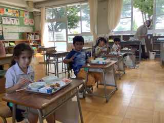 今日は、ひまわりとさくらにおじゃましました。当番の仕事をしてから、それぞれ自分の給食をとりにいっていましたね。