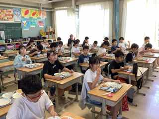 今日は、6の1におじゃましました。いただきますの挨拶をきちんとして、食べ始めます。目の前にいた子が、早速フォークをパンの中央につんつんとさし始めました!おぉ、これはまさしく焼きそばパンを作るための作業ですね!