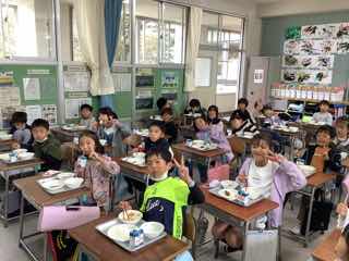 今日は、2の3におじゃましました。午前中は、町たんけんで、道光寺方面に行ってきた2年生です。美味しいさつま揚げのことを話してみると、すごく納得してくれましたよ。今日と明日は牛乳パックが変更されていますが、量に変わりがないことはちゃんと知っていましたよ。さすが、見た目では、だまされませんね。素晴らしい!