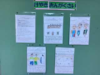 廊下を歩いてみると、けやき音楽祭の振り返りが掲示されています。みんなの喜びがたくさん書かれていて、先週の土曜日のことを思い出せます。